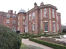 Iscoyd Park is a three-storey redbrick country house in Wrexham County Borough, Wales. It has a slate roof built in the early 18th century. It was sold in 1737 to William Hanmer. The house and estate was then purchased by Philip Lake Godsal in 1843 and remains in the Godsal family to this day. Iscoyd was designated a Grade II* listed building in 1962 as a well-preserved country house. It supported by a range of 18th- and 19th-century service buildings including a park and gardens, outbuildings, coach house, corn house, kennels, laundry, piggery and stables.[1][2][3] The dovecote has a pyramidal slate roof.[3] The house is now run by Philip Langley Godsal and his wife Susie, who took over the house from his father Philip Caulfeild Godsal (High Sheriff of Clwyd 1993)[4] in 2009 and began a complete refurbishment. This was funded by operating as a wedding and events business but also remains the Godsal family home. Iscoyd Park has won various awards for the restoration of the house and outbuildings, including the Historic Houses Association and Sotheby’s Restoration Award, the Hudson’s Heritage Award for Best Wedding Venue, Hudson’s Heritage Award for Best Accommodation, Wales Gold Award for Best Services Accommodation, Bridebook’s Best National Wedding venue.[5]