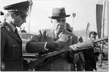 Sahibzada Iskander Ali Mirza (Urdu: اسکندر مرزا, Bengali: ইস্কান্দার মির্জা; 13 November 1899 – 13 November 1969), CIE, OSS, OBE, was a Pakistani general and civil servant who was the first President of Pakistan. He was elected in this capacity in 1956 until being dismissed by his appointed army commander General Ayub Khan in 1958.[2]