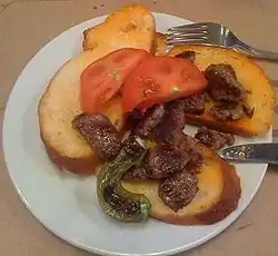 The meatballs are traditionally steamed. They are served with bread slices and unfermented grape juice on the side.[1] The sliced bread is dipped in meat broth and grilled along with the meatballs. Tomato slices and green hot peppers accompany the dish, also piyaz can be eaten along with it.