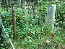The grave should be perpendicular to the direction of the Qibla (i.e. Mecca) so that the body, placed in the grave without a coffin lying on its right side, faces the Qibla.[14] Grave markers should be raised, not more than about 30 centimetres (12 in) above the ground, so that the grave will neither be walked nor sat on. Grave markers are simple, because outwardly lavish displays are discouraged in Islam. Graves are frequently marked only with a simple wreath, if at all. However, it is becoming more common for family members to erect grave monuments.