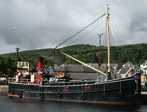 From the 1850s to the late 20th century the Clyde Puffer, made famous by the Vital Spark, was the workhorse of the islands, carrying much produce and many products to and from the islands. The Caledonian Steam Packet Company (CSP) was formed in May 1889 to operate steamer services to and from Gourock for the Caledonian Railway and soon expanded by taking over rival steamer operators.[44] David MacBrayne Ltd operated the Glasgow to Ardrishaig steamer service, as part of the "Royal Route" to Oban.[45] During the 20th century many of the islands were developed as tourist resorts for Glaswegians who went "Doon the Watter", in parallel to mainland resorts such as Largs and Troon.[46][47] In 1973 CSP and MacBraynes commenced joint Clyde and West Highland operations under the new name of Caledonian MacBrayne.[48] A publicly owned company, they serve Great Cumbrae, Arran and Bute as well as running mainland-to-mainland ferries across the firth.[4][49] Private companies operate services from Arran to Holy Isle[5] and from McInroy's Point (Gourock) to Hunter's Quay on the Cowal peninsula.[50]