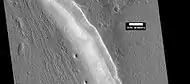 Smooth cliff of Mamers Valles. Note the lack of boulders. Much of the surface may have just been blown in or dropped from the sky (as dirty frost). Image from HiRISE.