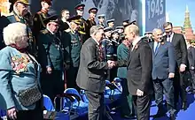 Israel hosts the most extensive Victory Day celebrations outside the former Soviet Union.[106] Due to the large number of Red Army veterans who retired to Israel from former Soviet countries, the Russian government and military regularly send delegations to meet with the Red Army veterans associations in Israel, as well as to take part in the annual Victory Day events.[107]