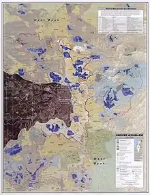 About 300,000 Israeli settlers live in the West Bank along the Israeli West Bank barrier (and a further 200,000 live in East Jerusalem and 50,000 in the former Israeli–Jordanian no-man's land). The barrier has many effects on Palestinians including reduced freedoms, road closures, loss of land, increased difficulty in accessing medical and educational services in Israel,[46] restricted access to water sources, and economic effects. Regarding the violation of freedom of Palestinians, in a 2005 report, the United Nations stated that:[47] ...it is difficult to overstate the humanitarian impact of the Barrier. The route inside the West Bank severs communities, people's access to services, livelihoods and religious and cultural amenities. In addition, plans for the Barrier's exact route and crossing points through it are often not fully revealed until days before construction commences.[47] This has led to considerable anxiety among Palestinians about how their future lives will be impacted...The land between the Barrier and the Green Line constitutes some of the most fertile in the West Bank. It is currently the home for 49,400 West Bank Palestinians living in 38 villages and towns.[48]