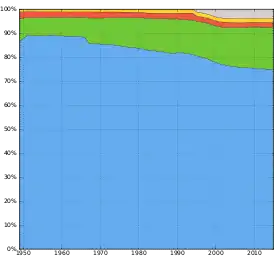 When Israel was first established in 1948, it had the third-largest Jewish population in the world, after the United States and Soviet Union. In the 1970s, Israel surpassed the Soviet Union as having the second-largest Jewish population.[35] In 2003, the Israeli Central Bureau of Statistics reported that Israel had surpassed the United States as the nation with the world's largest Jewish population. The report was contested by Professor Sergio DellaPergola of the Hebrew University of Jerusalem. Considered the greatest demographic expert on Jews, Della Pergola said it would take another three years to close the gap.[36] In January 2006, Della Pergola stated that Israel now had more Jews than the United States, and Tel Aviv had replaced New York as the metropolitan area with the largest Jewish population in the world,[37] while a major demographic study found that Israel's Jewish population surpassed that of the United States in 2008.[38] Due to the decline of Diaspora Jewry as a result of intermarriage and assimilation, along with the steady growth of the Israeli Jewish population, it has been speculated that within about 20 years, a majority of the world's Jews will live in Israel.[39] In March 2012, the Israeli Census Bureau of Statistics reported on behalf of Ynet has forecast that in 2019, Israel will be home to 6,940,000 Jews, 5.84 million which are non-haredi Jews living in Israel, compared with 5.27 million in 2009. The number is expected to grow to anywhere between 6.09 million and 9.95 million by 2059, marking a 16%–89% increase with the 2011 population. The Bureau also forecasts that the ultra-Orthodox population will number 1.1 million people by 2019, compared with 750,000 in 2009. By 2059, the projected Haredi Jewish population is estimated to between 2.73 million and 5.84 million, marking a 264%–686% increase. Thus the total projected Israeli Jewish population by 2059 is estimated to between 8.82 million and 15.790 million.[40] In January 2014, it was reported by demographer Joseph Chamie that the projected population of Israeli Jews is expected to reach between 9.84 million by the year 2025 and 11.40 million by 2035.[41]