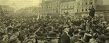 The third attempt came on 16 October 1918 when János Lékai, a member of the society Galilei-circle and an anti-military group led by Ottó Korvin, tried to kill Tisza while he was leaving the Hungarian Parliament, but the revolver malfunctioned and Tisza managed to flee.[26] The assassin was sent to prison but was released after 15 days during the Chrysanthemum Revolution.