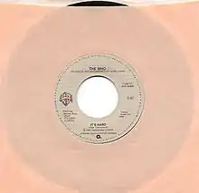 "It's Hard" is a song written by Pete Townshend that featured on British rock band The Who's tenth album, It's Hard, of which it was the title track. It was released as the third and final vinyl single from the album in 1983, backed with the John Entwistle written song "Dangerous", but failed to chart, although it reached number 39 on the Billboard Hot Mainstream Rock Tracks.[2] This would become the last Who single of new material until "Real Good Looking Boy" in 2004, and the last album single by them until "Black Widow's Eyes", two years later.