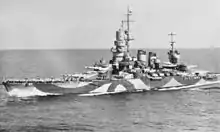 In December 1941, Andrea Doria formed part of the escort during Operation M41, a major convoy from Italy to Benghazi in Libya on the 13th. M42 followed on 17–19 December, where Andrea Doria saw action against British cruisers and destroyers in the First Battle of Sirte.[7] Late on the 17th, the Italian fleet, commanded by Admiral Angelo Iachino, engaged the British light forces. Both sides acted hesitantly, however, and no decisive engagement resulted.[11] During the battle, the destroyer Kipling suffered some damage from near misses, variably credited to Doria, Cesare or the heavy cruiser Gorizia.[12] Operation M43 followed on 3 January 1942; Andrea Doria again provided escort for the three convoys to Libya. While on the operation, Andrea Doria suffered mechanical problems and had to return to port early. She remained inactive for the remainder of the year, and indeed until the Armistice in September 1943 that removed Italy from the war, owing to severe fuel shortages in the Italian Navy.[7] On 9 September 1943, Andrea Doria left Italy, bound for internment in Malta, where she remained until 8 June 1944. She was then released to return to Sicily, and eventually returned to Taranto on 14 March 1945.
