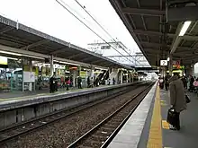 Itami Station (伊丹駅, Itami-eki) is a train station on the West Japan Railway Company (JR West) Fukuchiyama Line (JR Takarazuka Line) in Itami, Hyōgo Prefecture, Japan. The station is connected to a large indoor mall to the northwest by a broad pedestrian bridge. Though Hankyu Itami Station is not within easy walking distance, there is also a series of broad pedestrian streets heading in its direction.