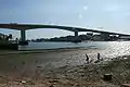 The Itchen Bridge is a bridge over the River Itchen in Southampton, Hampshire. It is a high-level hollow box girder bridge. It is located about a mile from the river mouth. The bridge spans 870 yards (800 m), is 92 feet (28 m) at its highest point and weighs 62,000 tons.[1] The bridge connects the A3025 Portsmouth Road to Southampton. It was built to replace the former chain ferry, known as the Floating Bridge, that crossed the river at that point. The bridge's set of blue energy-saving lights can be seen from up to 5 miles (8.0 km) down Southampton Water from the bridge.