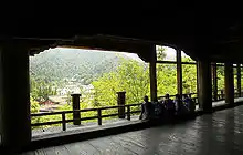 The nearby Five-storied Pagoda constructed in 1407 (thus predating Senjokaku) enshrined Yakushi Nyorai Zazo, the Buddha of Medicine said to have been made by Kobo Daishi himself, accompanied by Fugen Bosatsu (Mercy Buddha) and Monju Bosatsu (Wisdom Buddha). The three images were moved to the Daiganji Temple during the Meiji reformation.