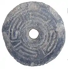The Malacates are all artifacts of primary class ceramic artifacts. Decoration on its upper side, many of them are flat on the bottom section, but the shape -all are circular- is variable in their section. In the past, (in Chiapas), it was mentioned that some Malacates were tapered, flat and mixed[29] existed.[28] Its most definite function, more than any of the remaining ceramic artifacts, always considered as spindle whorls. However, as a secondary or alternate function could also serve as necklace beads.[28]