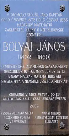![]() Portrait of J. Bolyai by Ferenc Márkos (2012)[1] | |