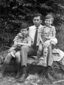 József Tihamér Antall de Dörgicse et Kisjene was born to an ancient Hungarian family from the lower nobility in Budapest on 8 April 1932.[2] His father, József Antall Sr., a jurist and civil servant, worked for the government in several ministries. Antall Sr. coordinated the first living wage calculations in Hungary, and he was a founding member of the Independent Smallholders' Party (1931). During World War II, he presided over the government committee for refugees.[2] After the German occupation of Hungary he resigned; later he was arrested by the Gestapo. After the war, he became minister of reconstruction in the government of Zoltán Tildy. Later, he became president of the Hungarian Red Cross, but after the communist coup he resigned and retired to his family estate. In 1991, he was posthumously honoured by Yad Vashem.