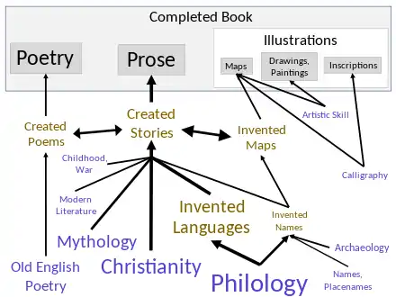 J. R. R. Tolkien's fantasy books on Middle-earth, especially The Lord of the Rings and The Silmarillion, drew on a wide array of influences including language, Christianity, mythology, archaeology, ancient and modern literature, and personal experience. He was inspired primarily by his profession, philology; his work centred on the study of Old English literature, especially Beowulf, and he acknowledged its importance to his writings.