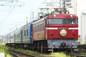 The Class ED76 (ED76形) is a Bo-2-Bo wheel arrangement AC electric locomotive type operated on passenger and freight services in Japan since 1965, originally by Japanese National Railways (JNR), and later by Hokkaido Railway Company (JR Hokkaido), Kyushu Railway Company (JR Kyushu) and Japan Freight Railway Company (JR Freight).[2] As of 1 April 2016, just 10 locomotives remained in service, all operated by JR Freight.[3]