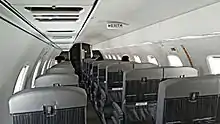 JSX's aircraft are configured with seats offering 36 inches (91 cm) of pitch and provide in-seat power, while cabin space is increased by removing overhead compartments. Refreshments and alcoholic beverages are offered complimentary during flight.[23]