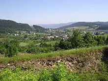 ![]() Jablunkov Pass seen from the southern slopes of Gírová (Girowa) mountain, looking northwest | |