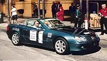 In retirement, Brabham continued to be involved in motorsport events, appearing at contemporary and historic motorsport events around the world where he often drove his former Cooper and Brabham cars until the early 2000s. In 1999, after competing at the Goodwood Revival at the age of 73 he commented that driving stopped him getting old.[47] Despite a large accident at the 2000 Revival, the first racing accident to put him in hospital overnight, he continued to drive until at least 2004.[42] By the late 2000s, ill-health was preventing him from driving in competition. In addition to the deafness caused by years of motor racing without adequate ear protection, his eyesight was reduced due to macular degeneration and he had kidney disease for which by 2009 he was receiving dialysis three times a week. Nonetheless, that year he attended a celebration of the 50th anniversary of his first world championship at the Phillip Island Classic festival of motorsport,[51] and in 2010 flew to Bahrain with most of the other Formula One world Drivers' Champions for a celebration of 60 years of the Formula One world championship. Brabham was the oldest surviving F1 champion.[52]