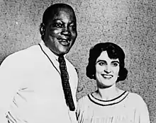 Johnson earned considerable sums endorsing various products, including patent medicines, and had several expensive hobbies such as automobile racing and tailored clothing, as well as purchasing jewelry and furs for his wives.[56] He challenged champion racer Barney Oldfield to a match auto race at the Sheepshead Bay, Brooklyn dirt track. Oldfield easily out-distanced Johnson.[57] Once, when he was pulled over for a $50 speeding ticket, he gave the officer a $100 bill; when the officer protested that he couldn't make change for that much, Johnson told him to keep the change as he was going to make his return trip at the same speed.[5] In 1920, Johnson opened the Club Deluxe, a Black and Tan night club in Harlem; he sold it three years later to a gangster, Owney Madden, who renamed it the Cotton Club.