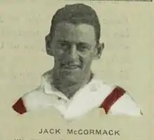 A product of Penshurst, New South Wales, Jack McCormack played with St George Dragons for five years between 1927–1932. He played fullback in two losing grand finals with St. George in 1927 and 1930. Good form saw him selected to play five matches for New South Wales in 1931.[2] Jack McCormack was the brother of another St. George player, Eric McCormack.