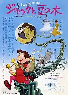 Jack and the Beanstalk (ジャックと豆の木, Jakku to Mame no Ki) is a 1974 Japanese animated feature film produced by Group TAC and Nippon Herald Films and directed by Gisaburō Sugii. Styled after classical Western animation, it is a musical fantasy based on the fairy tale of the same name with the screenplay by Shūji Hirami, music organization by Yū Aku and songs and score composed and arranged by Takashi Miki with Shun'ichi Tokura and Tadao Inōe.[3] It was released in Japan on July 20, 1974[2] and in the United States by Columbia Pictures in 1976.[4]
