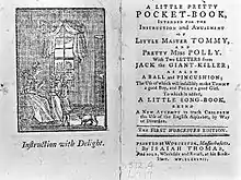 As the eighteenth century wore on, Jack became a familiar figure. Research by the Opies indicate that the farce Jack the Giant-Killer was performed at the Haymarket in 1730; that John Newbery printed fictional letters about Jack in A Little Pretty Pocket-Book in 1744; and that a political satire, The last Speech of John Good, vulgarly called Jack the Giant-Queller, was printed ca. 1745.[3] The Opies and Bottigheimer both note that Henry Fielding alluded to Jack in Joseph Andrews (1742); Dr. Johnson admitted to reading the tale; Boswell read the tale in his boyhood; and William Cowper was another who mentioned the tale.[3][4]