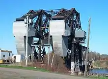 The Jackknife (or Jack-knife) Bascule Bridge is a bascule bridge that spans the Kaministiquia River at Thunder Bay, Ontario, Canada, to link the city to Mission Island, one of two islands in the Kaministiquia River delta. The bridge was built by the Canadian Pacific Railway between August 1910 and April 1913. The contractor for the abutments and piers was Alexander Charles Stewart (1867–1944). The bridge had two decks, the lower deck for trains and the upper deck for vehicular road traffic.