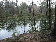 The Jones Creek Trail wanders through swamp bay, tupelo, swamp dogwood, American hornbeam and bald cypress along and across Jones Creek, a tributary of the St. Johns River. Osmunda regalis (royal fern), Osmunda cinnamomea (cinnamon fern), and Woodwardia aereolata (net leaf chain fern) also abound.[3]