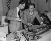 In 1961, with Pietro Belluschi and C. Frederick Wise,[30] Fresco collaborated on a project known as the Sandwich House.[14] Consisting of mostly prefabricated components, partitions, and aluminum, the project sold houses for $2,950, or $7,500 with foundation and all internal installations.[30] During this period, Fresco supported his projects by designing prefabricated aluminum devices through Jacque Fresco Enterprises Inc.[31]