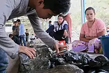 Other colors, like "Olmec blue" jade, which is characterized by its deep blue-green, translucent hue with white flecking, are also becoming more highly valued because of its unique beauty and historical use by the Mesoamerican Olmec and also in Costa Rica;[14] however, this variety was only recently rediscovered and is only being minimally exploited by native Guatemalans. It is thus difficult to obtain and as yet too rare and little known to have attained great value as a gemstone.