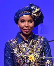 Jaha Dukureh (born 1989 or 1990)[1][2] is a Gambian women's right activist and anti-female genital mutilation campaigner.[1] Dukureh was subjected to female genital mutilation in The Gambia when she was a little more than a week old.[2] She is the founder and executive director of Safe Hands for Girls, an organization working to end FGM,[3] and was the lead campaigner in The Guardian's End FGM Guardian Global Media Campaign.[4] In April 2016, she was named to the 2016 Time 100 list.[5][6] Dukureh was nominated for the Nobel Peace Prize in February 2018,[7] has won the Eleanor Roosevelt Val-Kill Medal,[8] and is a UN Women Goodwill Ambassador for Africa.[9] A feature film about Jaha's life was released by Accidental Pictures and The Guardian.