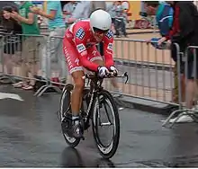 Jakob Diemer Fuglsang (born 22 March 1985) is a Danish professional road racing cyclist, who currently rides for UCI WorldTeam Astana–Premier Tech.[4] Before turning professional for Team Saxo Bank, he was a mountain biker racing for Team Cannondale–Vredestein, winning the Under-23 World Cup and Under-23 World Championships.
