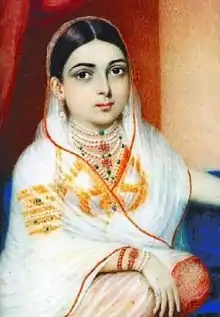 James Achilles Kirkpatrick was born in 1764 at Fort St George, Madras.[1] He replaced his brother William and arrived as resident in Hyderabad in 1795 (according to William Dalrymple) as a "cocky young imperialist intending to conquer India". There he became thoroughly enamoured of Indo-Persian culture of Nizam's court, and gave up his English manner of dress in exchange for Persian costumes.[2]
