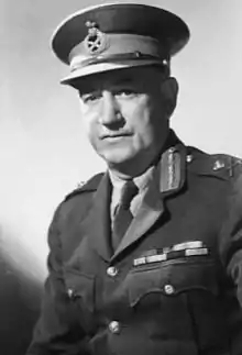 Cannan received no honours for the Second World War. Blamey nominated him for a Knight Commander of the Order of the British Empire in September 1943, but it was refused, it not being the Labor government's policy to award knighthoods at this time.[1] In November 1945, Blamey was abruptly dismissed by the government. Asked if he wanted any honours for himself, Blamey declined, instead requesting knighthoods for his generals, including Cannan. His request was refused.[31] In December 1949, the government changed and Blamey wrote to the new Prime Minister, Robert Menzies, once again recommending knighthoods for a number of his generals, including Cannan. All were accepted "except, for some inexplicable reason, for Cannan".[32] Of Cannan, it was said that his "contribution to the defence of Australia was immense; his responsibility for supply, transport and works, a giant-sized burden; his acknowledgement—nil".[25]