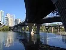 ![]() The bridge viewed from the southwest, from the nearby Lamar Boulevard Bridge | |