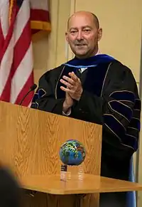 Stavridis has given numerous commencement and graduation addresses around the country at universities such as the United States Merchant Marine Academy in 2008,[60][61] the University of Miami in 2011,[62] Dickinson College in 2017,[63] and California State Maritime[64] Norwich University[65] in 2018, and Metropolitan State University of Denver in 2019.