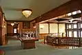 The interior features an art gallery that housed Hill's collection of painting and sculpture. It even had a pipe organ, installed after someone suggested to Hill that other wealthy people had pipe organs in their homes. The house had a hybrid system of gas and electric lighting, with rotary switches on the walls to turn on the electric lights. However, there were no electrical outlets installed, because during that era electricity was only used for lighting. The woodwork in the house is very intricate, with hand-carved woodworking in the central hallway, the formal dining room, and the music room. Other rooms in the house, particularly on the second floor where most of the family members lived, do not have hand carved woodwork, but the woodwork is still richly colored and nicely detailed.