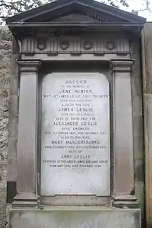 His grandson James Leslie (1881-1921) was also a civil engineer.