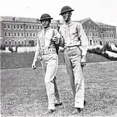 In November, he returned to the United States,[36] and was assigned to Marine Barracks, Washington, D.C., again under William Rupertus until June 1940. In March 1940, he became a company commander in the Marine Guard detachment at President Franklin D. Roosevelt's personal retreat at Warm Springs, Georgia, under the command of LtCol Charles T. Brooks, and became close to the president during an extended retreat.[37] At one point, the guards performed silent exhibition drill for the president and patients [38] at the Roosevelt Warm Springs Institute for Rehabilitation.