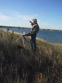 ![]() Artist James Pollock watercolor painting on location along the breaks of Lake Oahe in South Dakota. | |