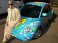 James Rizzi with the Volkswagen New Beetle designed by him.