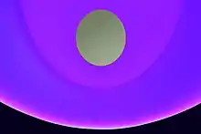 In 1966, Turrell began experimenting with light in his Santa Monica studio, the Mendota Hotel, at a time when the so-called Light and Space group of artists in Los Angeles, including Robert Irwin, Mary Corse and Doug Wheeler, was coming into prominence.[10] By covering the windows and only allowing prescribed amounts of light from the street outside to come through the openings, Turrell created his first light projections.[11] In Shallow Space Constructions (1968) he used screened partitions, allowing a radiant effusion of concealed light to create an artificially flattened effect within the given space.[12] That same year, he participated in the Los Angeles County Museum's Art and Technology Program, investigating perceptual phenomena with the artist Robert Irwin and psychologist Edward Wortz.[13]