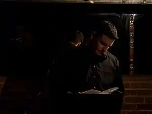 ![]() James Wagner reading his poems at Zinc Bar, April 30, 2006, New York City. Photograph by Jess Fanzo. |