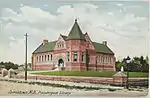 In 1887, Jamestown Electric Light and Power Company, Art Metal, and WCA Hospital were established. In 1888, Jamestown Woolen Spinning Co. established; the cornerstone of Holy Trinity Lutheran Church laid. In 1889, the American Aristotype Co. was established.[10] The first electric trolley car in Jamestown made its appearance in 1890. In 1891, a fire destroyed the Old Homestead Hotel at Third and Pine Streets and four people died. James Prendergast Library and the Municipal Light Plant were established the same year.[10]