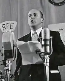 After the war Jan Nowak-Jeziorański stayed in the West, initially in London and then in Munich and Washington. Between 1948 and 1976 he was one of the most notable personalities of the BBC Polish Section. In 1952 he also became head of the Polish section of the Munich-based Radio Free Europe. Through his daily radio broadcasts he remained one of the most popular radio personalities, both in communist-held Poland and among the Polish diaspora in the West. After giving up his posts in 1976 he became one of the most prominent members of the Polish American Congress. He was also working as an advisor to the American National Security Agency and the presidents of the USA Ronald Reagan and Jimmy Carter. Through his contacts with many notable politicians in the USA, he was one of the proponents of Poland's membership in NATO (achieved in 1999).[7]