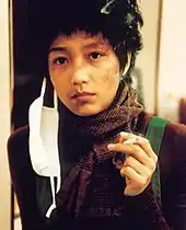Jang's first starring role was in the 2001 psychological horror film Sorum, in which she was cast against type as Sun-yeong, a chain smoking abused wife. The part required her to look badly bruised and dishevelled, and she found the regimen of three packets of cigarettes per day to be quite gruelling, despite being a smoker herself.[6] Both the film and Jang's performance received praise from critics, with Peter Y. Paik of The Film Journal commenting, "[Jang] Jin-young is utterly convincing in her portrayal of a battered wife, conveying both vulnerability and grit."[7] Jang won Best New Actress at the Busan Film Critics Awards,[8] Best Actress at the Blue Dragon Film Awards,[9] and also found success overseas, with award wins at several European film festivals.