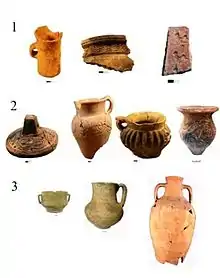 Pottery types found in 9th/10th century AD layers of Jankent: 1 - Dzhetyasar, 2 - Oghuz, 3 - Khorezmian (created by I.A. Arzhantseva 2012)