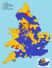 | Conservative & Lib. Unionist | Arthur Balfour | 594 | 272 | 130 | 14 | +116 | 40.6 | 46.8 | 2,919,236 | +3.4 | |
