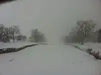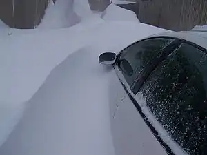 The January 31 – February 2, 2011 North American blizzard, also called the 2011 Groundhog Day Blizzard,[14][15][16] was a powerful and historic winter storm, situated around the United States and Canada on Groundhog Day.[14][17] During the initial stages of the storm, some meteorologists predicted that the system would affect over 100 million people in the United States.[18][19] The storm brought cold air, heavy snowfall, blowing snow, and mixed precipitation on a path from New Mexico and northern Texas to New England and Eastern Canada. The Chicago area saw 21.2 inches (54 cm) of snow and blizzard conditions, with winds of over 60 mph (100 km/h).[20] With such continuous winds, the Blizzard continued to the north and affected Eastern and Atlantic Canada. The most notable area affected in Canada was Toronto and the Greater Toronto Area. Blizzard conditions affected many other large cities along the storm's path, including Tulsa, Oklahoma City, Kansas City, St. Louis, Springfield, El Paso, Las Cruces, Des Moines, Milwaukee, Detroit, Chicago, Indianapolis, Dayton, Cleveland, New York City, New York's Capital District, and Boston.[21][22][23][24][25][26][27] Many other areas not normally used to extreme winter conditions, including Albuquerque, Dallas and Houston, experienced significant snowfall or ice accumulation. The central Illinois National Weather Service in Lincoln, Illinois issued only their fourth Blizzard Warning in the forecast office's 16-year history. Snowfall amounts of 20 to 28 inches (51 to 71 cm) were forecast for much of Northern and Western Illinois.